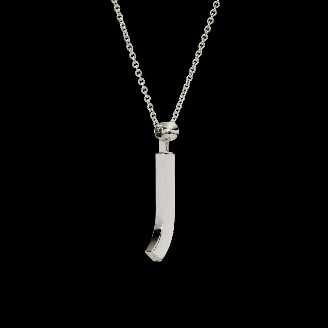 - Design: A sleek and modern elongated pendant, paired seamlessly with a delicate white gold ball accent at the top.